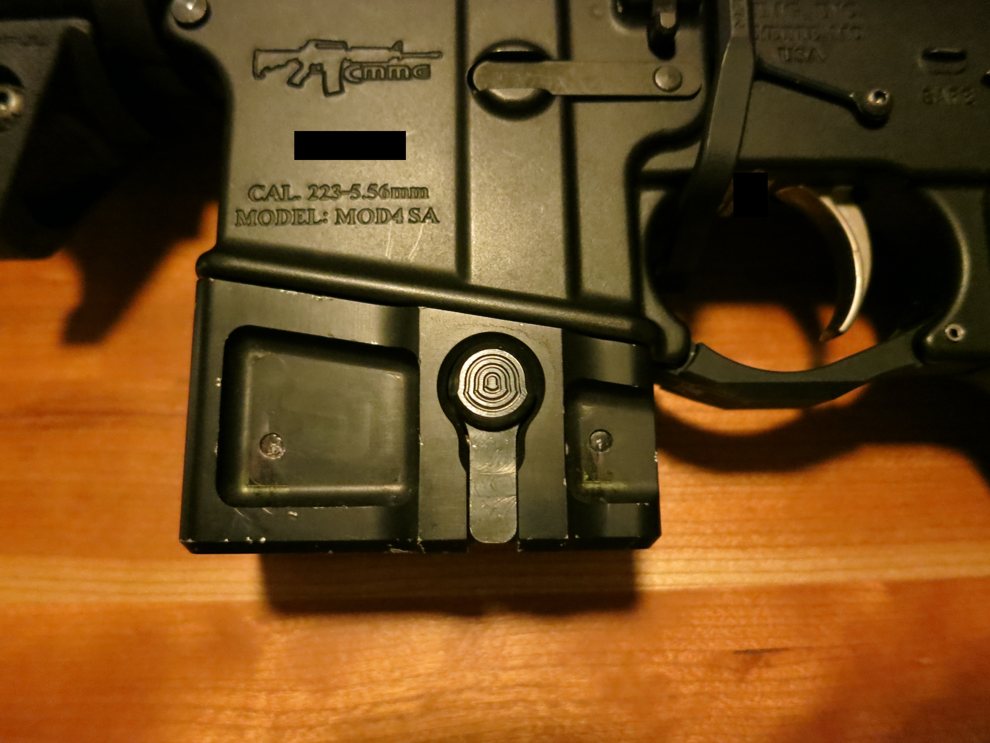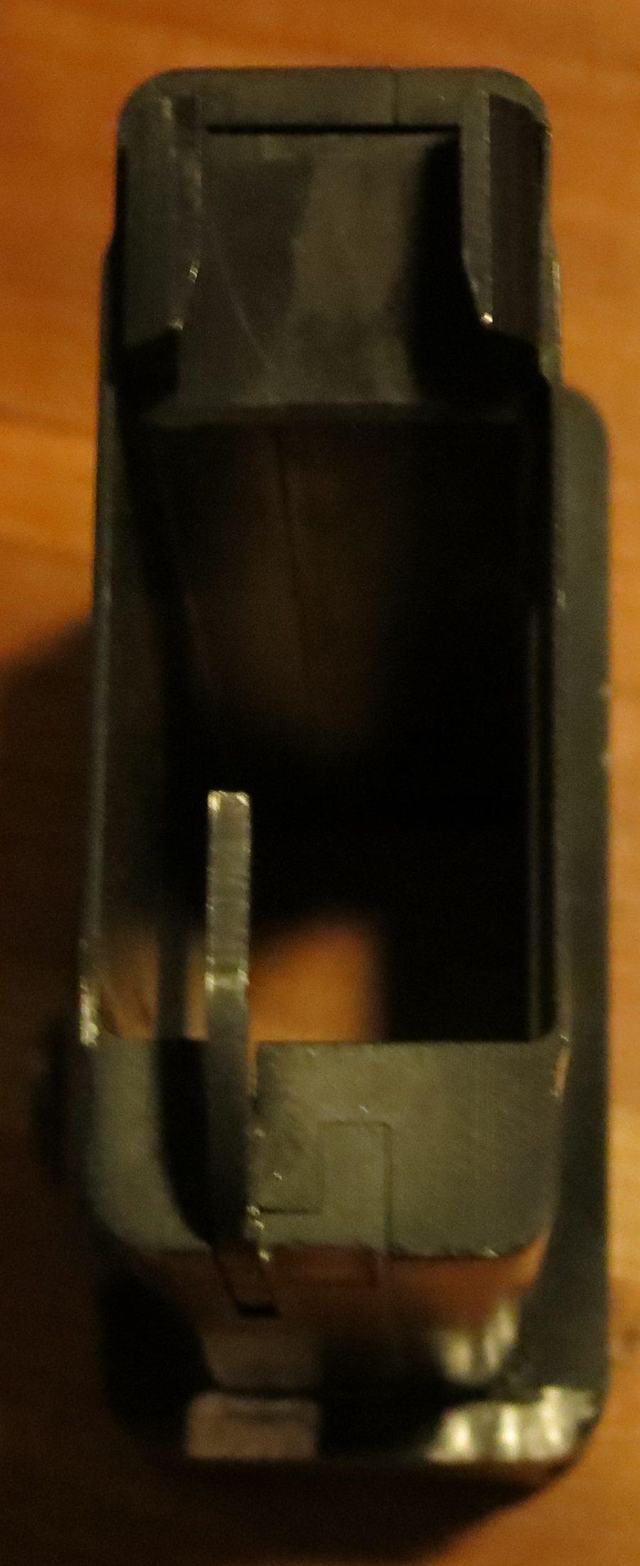 I added the front (with feed ramp) & rear (with ejector) portions of an inexpensive polymer AR15 9mm mag well adapter, to complete the 3-piece assembly. I went with polymer, because it’s easy to modify