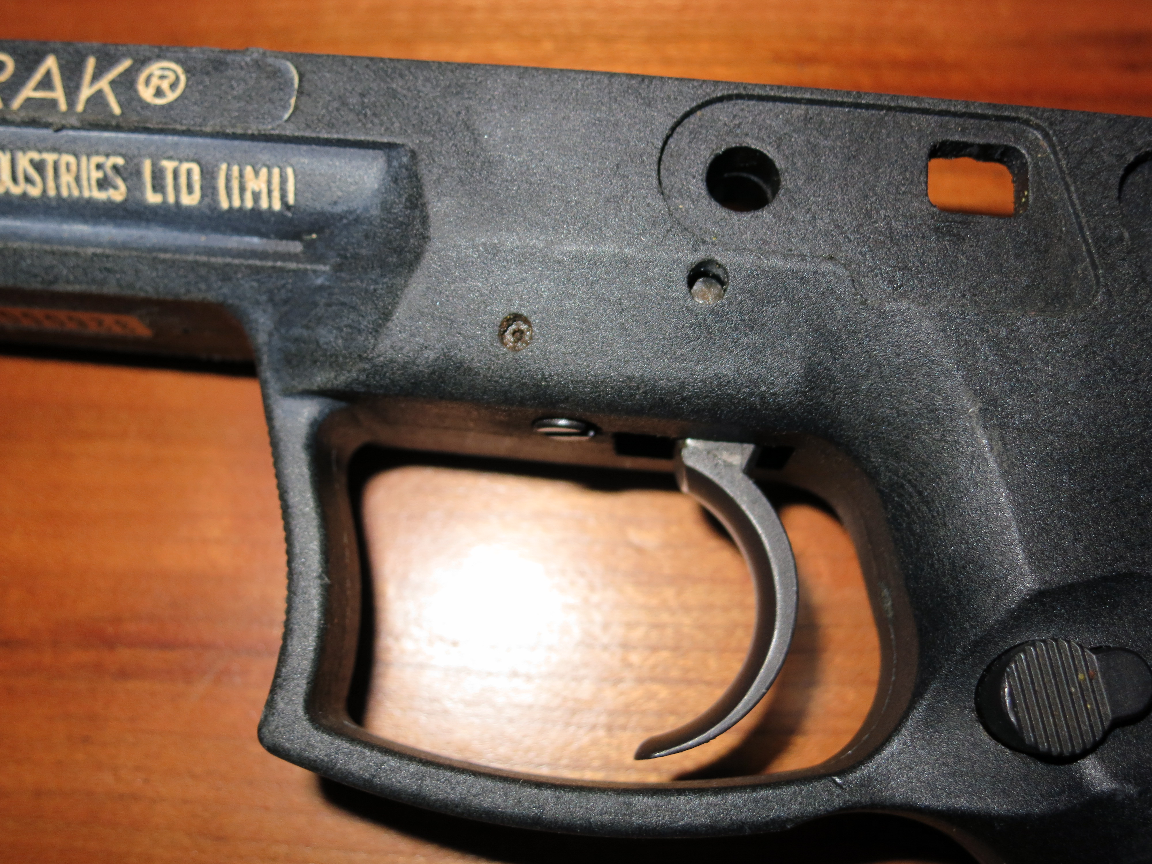 The frames are mostly the same. The IMI model has a second pin over the trigger, and I have no idea what it’s doing. The IWI model is missing that pin, so they must have a different way of holding that particular piece in.