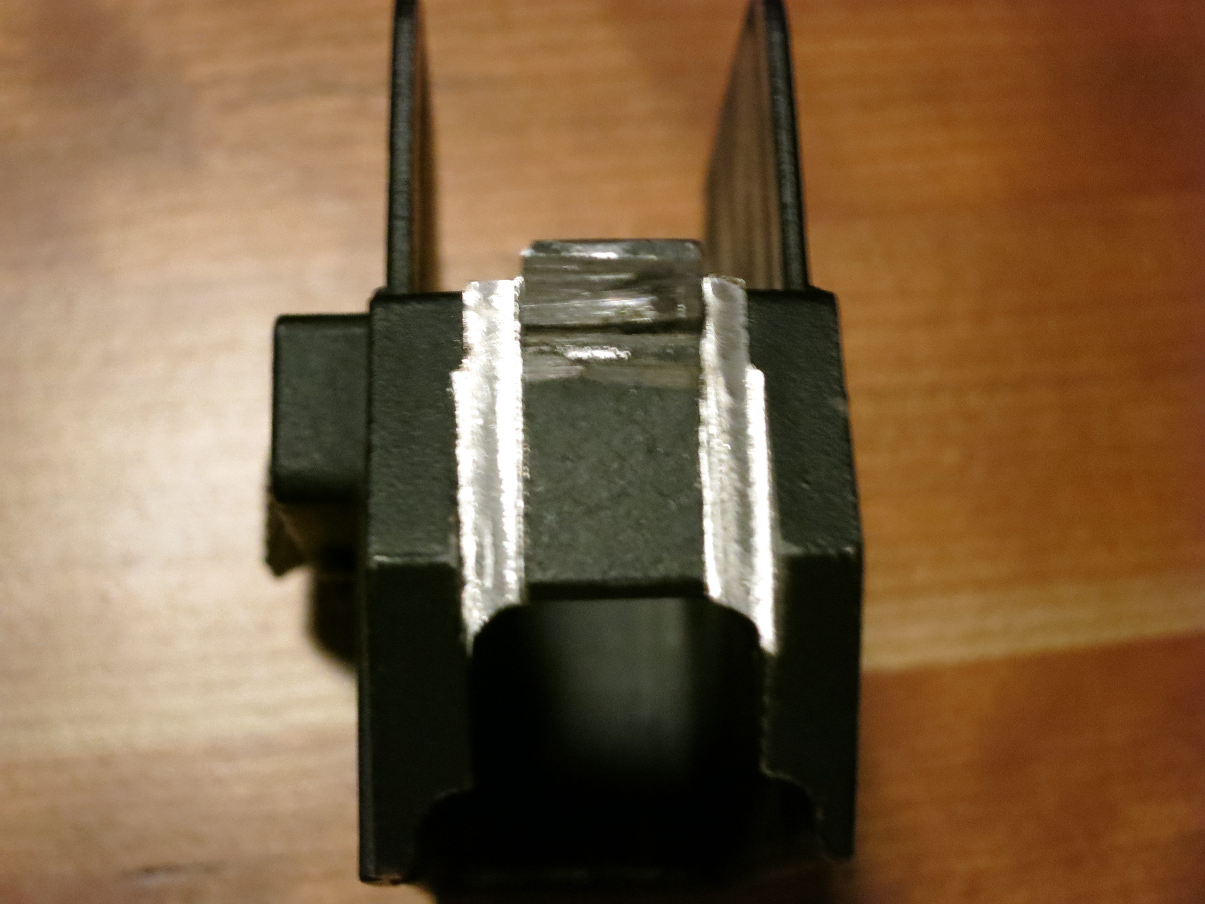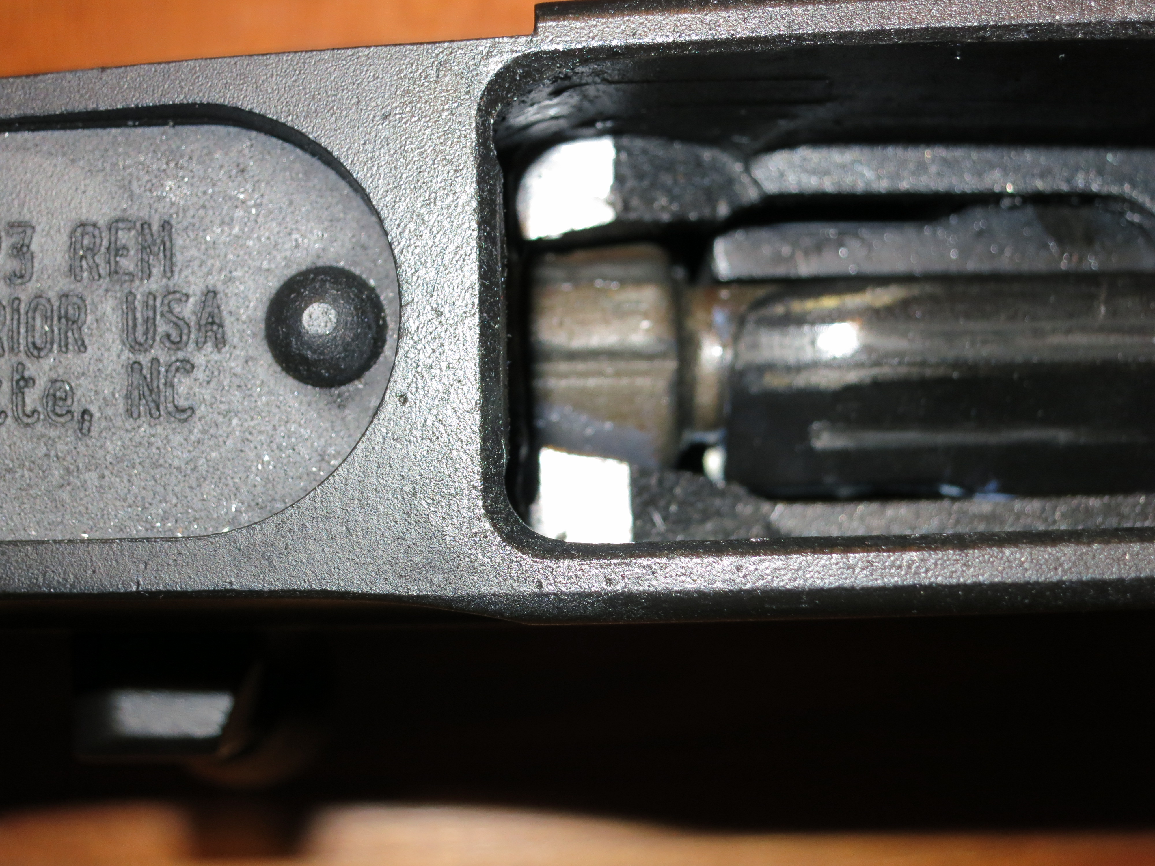 A more scary modification that you need to make is possibly modifying the front trunnion to allow full insertion of the AR magazine. On my gun, at least, the magazine hits the front trunnion and stops a tiny bit short of locking in.