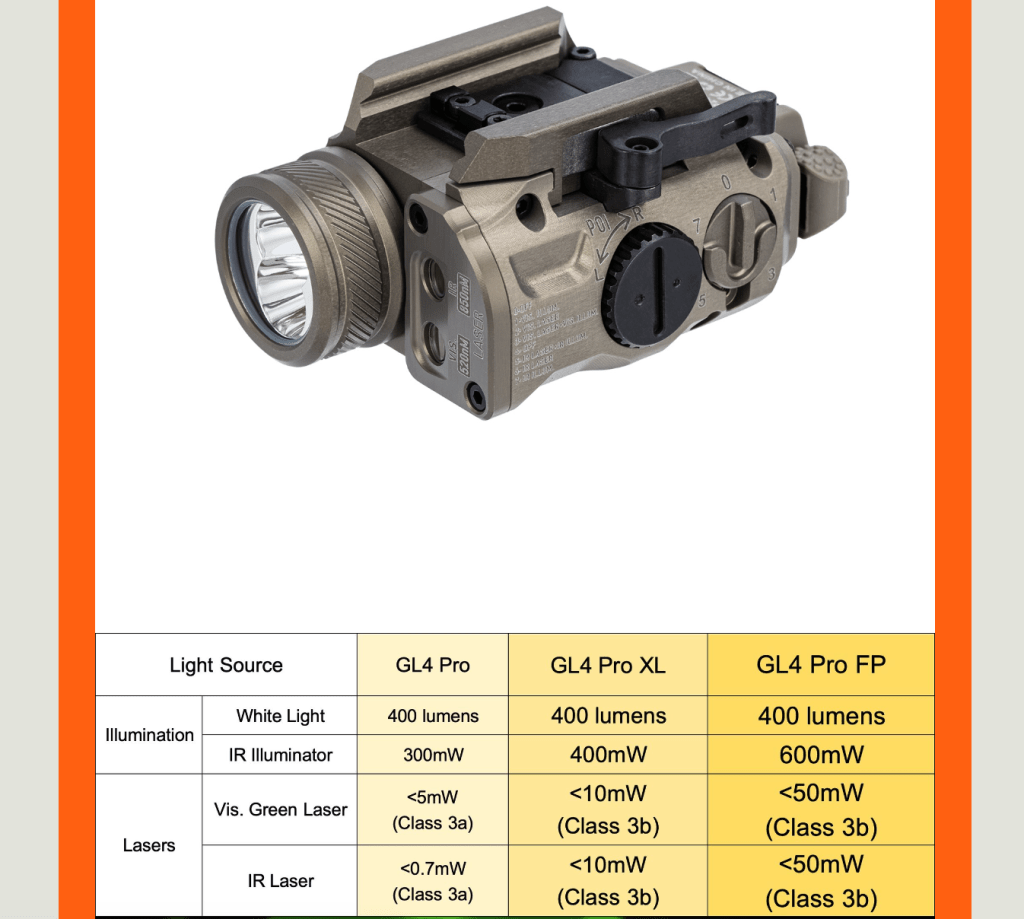 The GL4 Pro XL is out for $500 right now. The GL4 Pro FP is out in May for $800. I won’t comment on the legality of these solutions, but will note that the GL4 Pro is more than adequate for most pistol range tasks, especially at night or indoors.